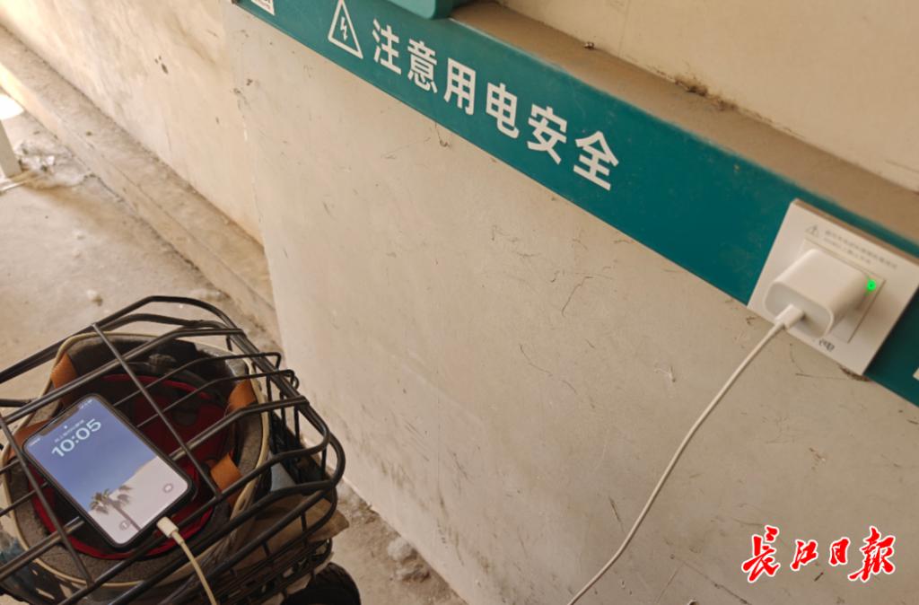 记者实测用电动自行车充电接口充手机。 图源:长江日报 记者商佩 摄