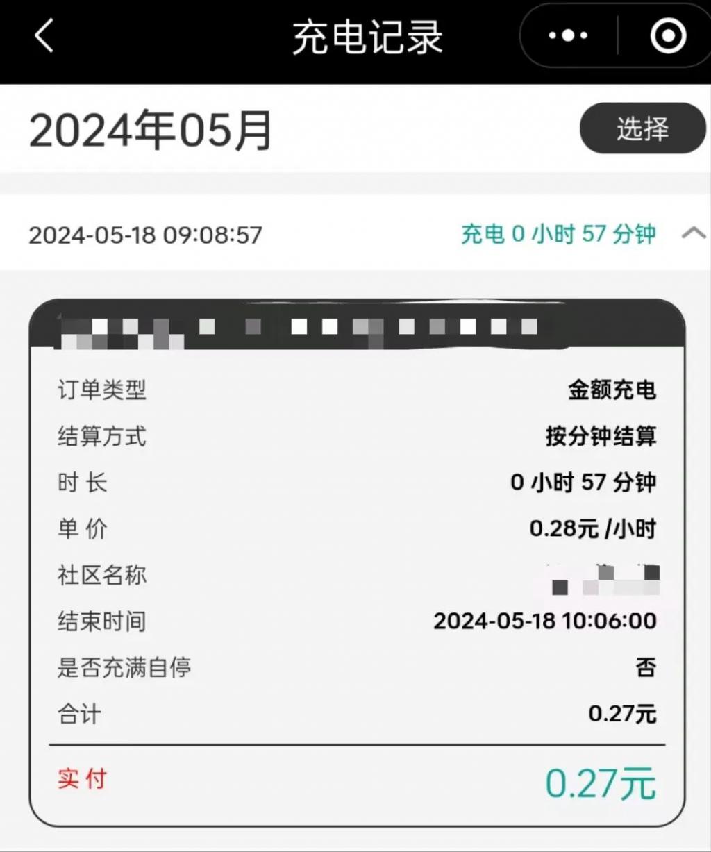 记者实测的充电订单详情。 图源:长江日报