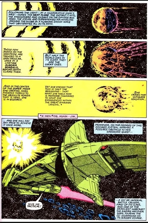 Lilandra指出和黑凤凰带来的威胁相比,即使是吞星也无足轻重。吞星吞噬世界来满足他地狱般的食欲,凤凰则可能吞噬所有存在。