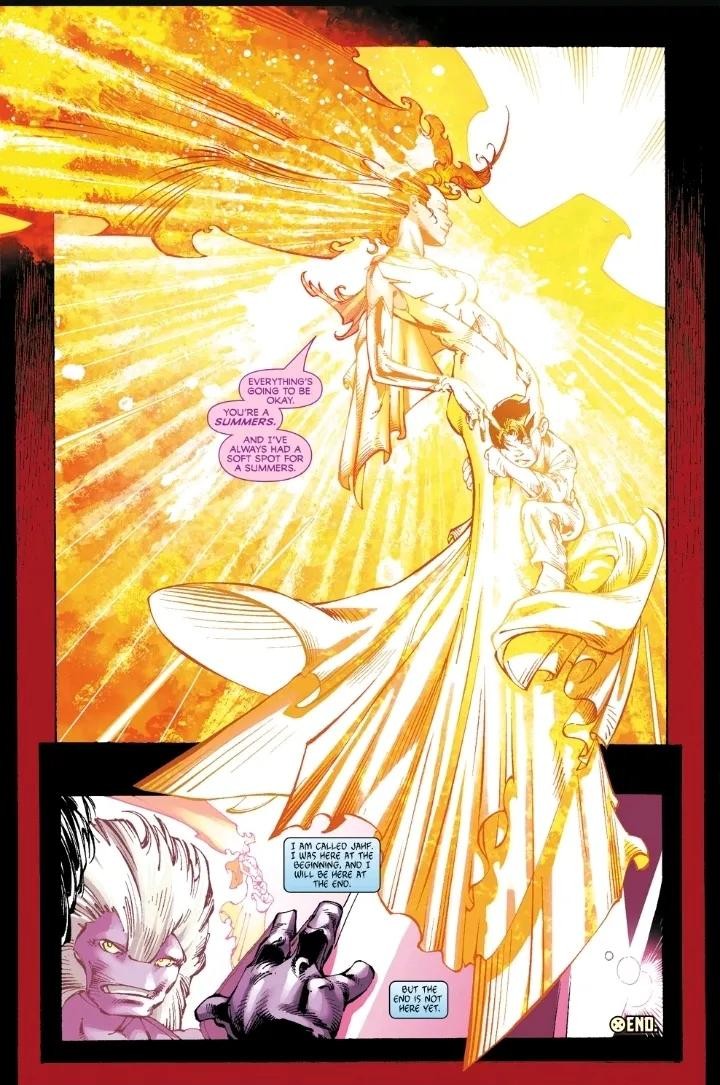 瑞秋指出凤凰之力在充满愤怒和憎恨的加百列·萨默斯手中,将会吞噬所有现实独眼龙说服他将凤凰之力归还原主,他照做并死去了。随后琴作为白凤凰现身在加百列面前安慰他,并声称自己总是对萨默斯家的人情有独钟。