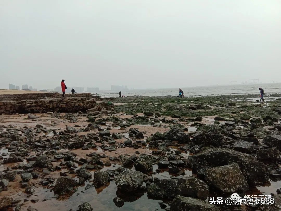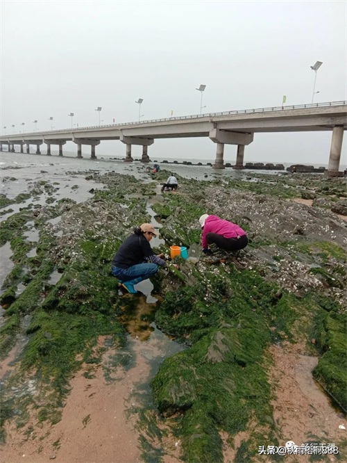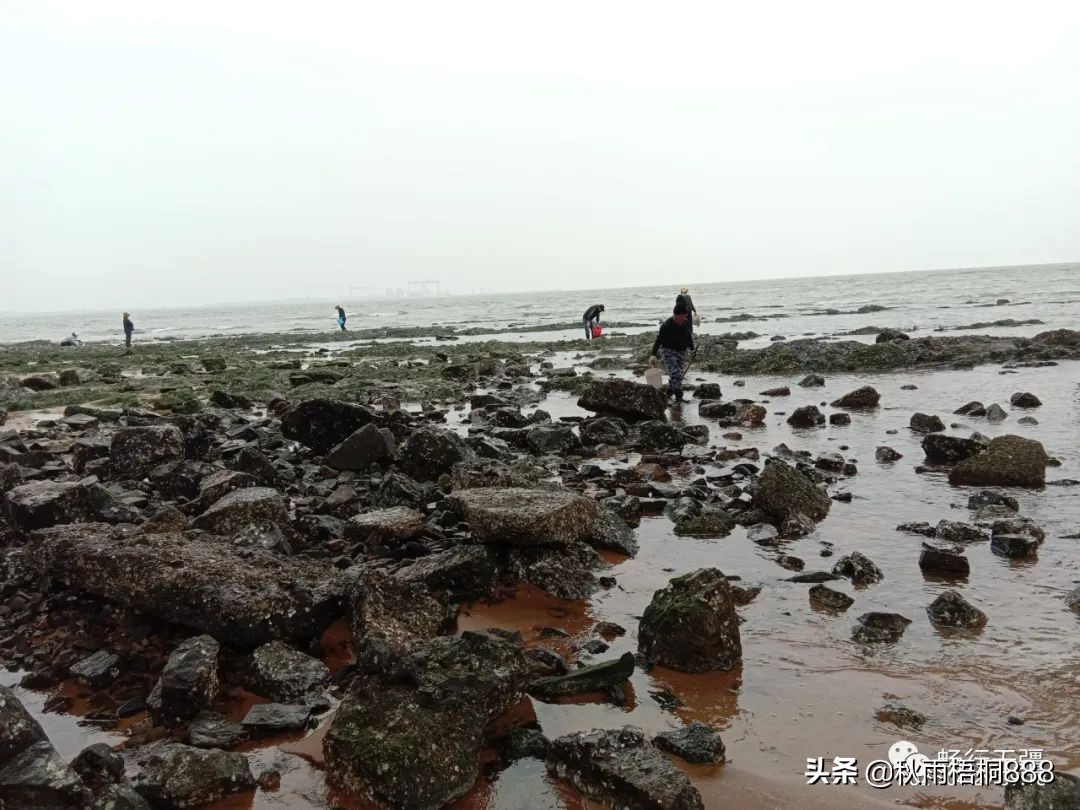 一会功夫,潮水果然退去了,裸露出大片的礁石,赶海人开始搜寻各种海生物。