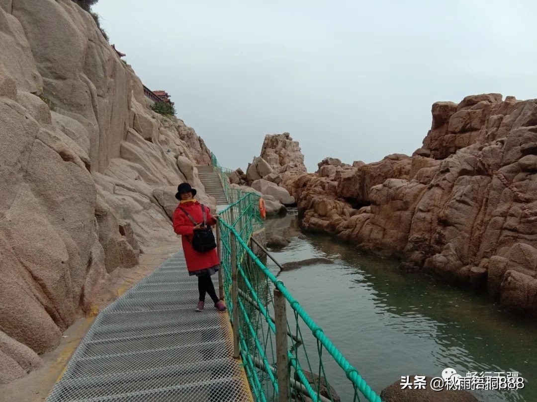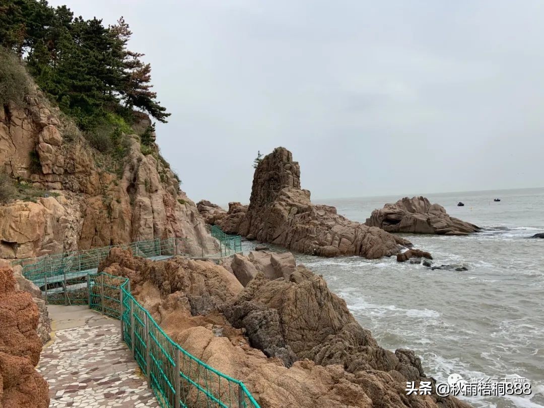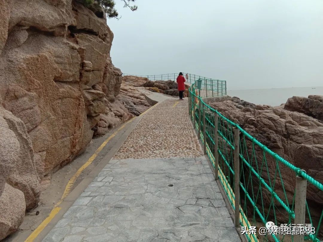 山石与大海交相辉映,栈道蜿蜒起伏便是这个景点的特色,与蓬莱长岛的九丈崖景色非常相似,但是那里票价便宜很多,而且对老年人是免费的。