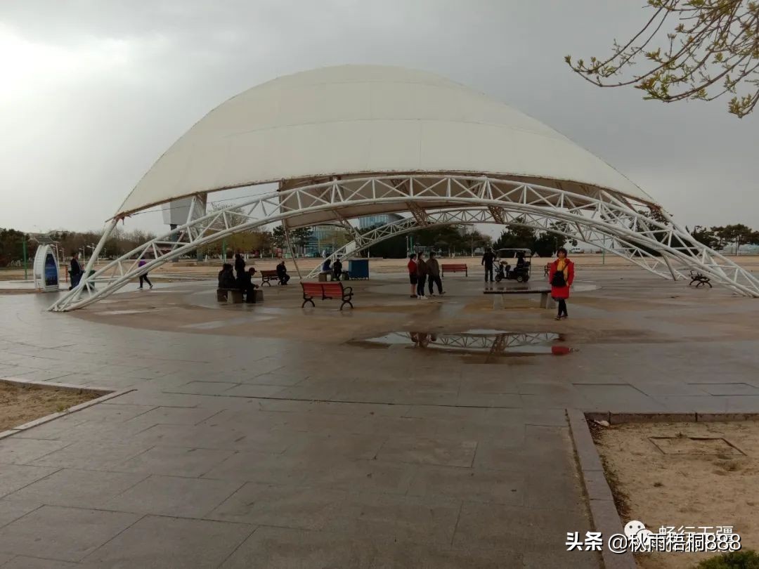银滩的景点并不多,令人奇怪的是,沿海滨建设的带状公园是收费的,50元一位,有一个名为“三观亭”的小亭子,建在海中礁石上,也要收费,我们都放弃了。