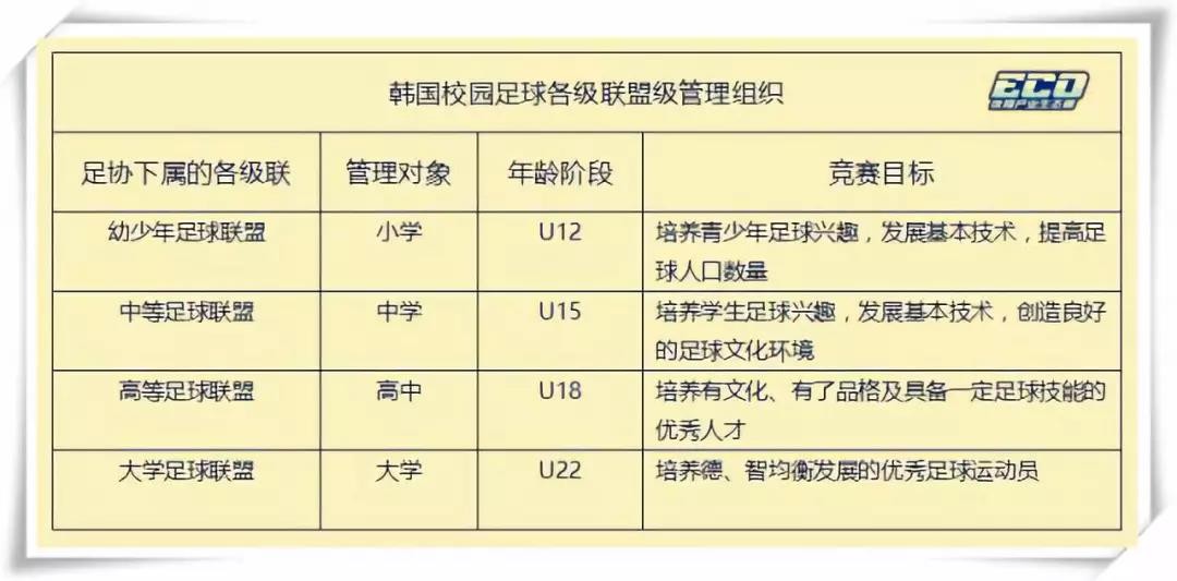 首先,韩国有着完备的校园体系。从小学、初中到高中、大学,韩国足球在每一个阶段都设置了对应的足球联盟,各级联盟虽然独立运营、但在球员的晋升制度上,又互相协调,形成了一个完整的梯队培养体系。