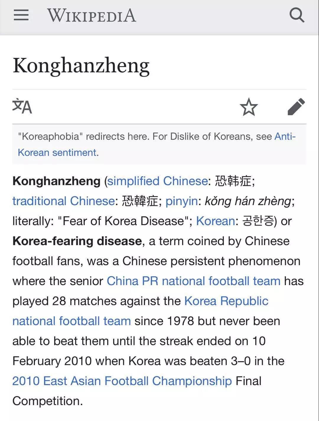 维基百科上令人颇为尴尬的“恐韩症”词条