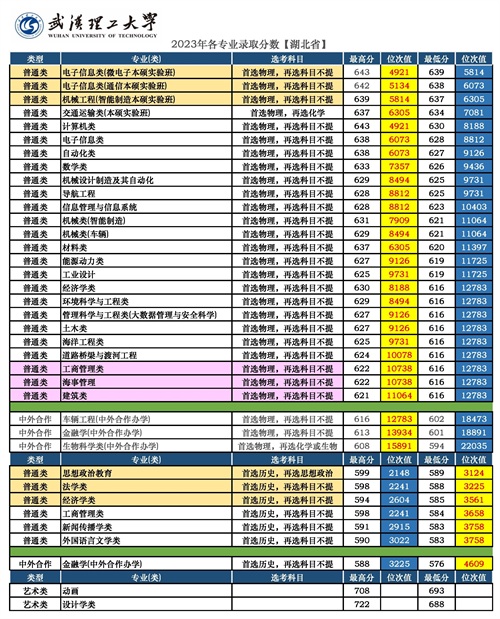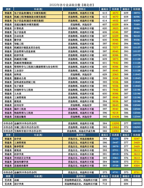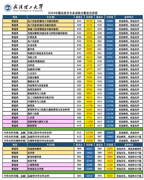 武汉理工大学2024年高考分专业录取分数及位次值【湖北省】
