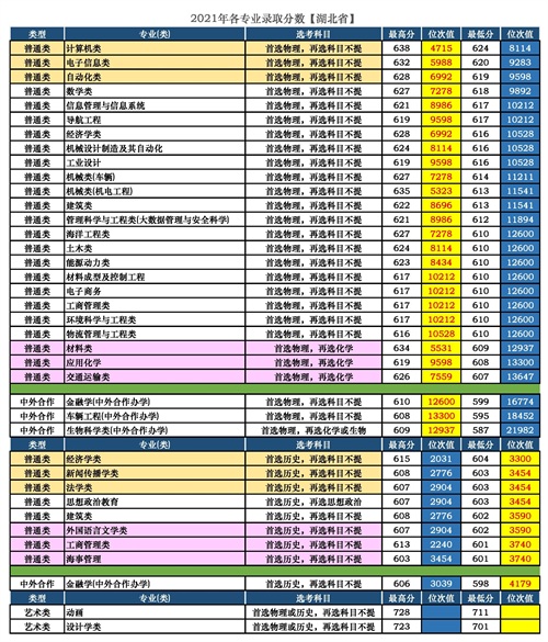 一、2021~2024年高考分专业录取分数及位次值【湖北省】