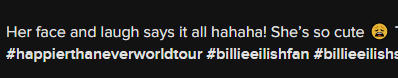 随后,碧莉将飞往珀斯,在那里进行两场演出,然后结束她的 "Happier Than Ever(比以往更幸福) "世界巡演。