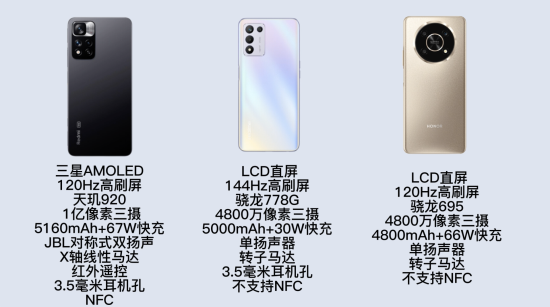 ①红米Note 11 Pro充电快,JBL双扬声器影音体验好,还有NFC;