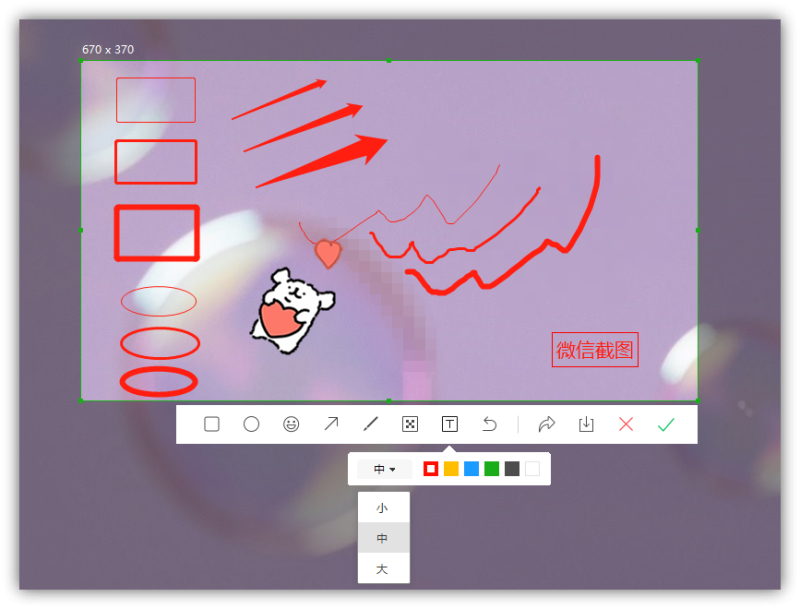 大家电脑上都有微信吧?微信自带的截图,默认快捷键是【Alt+A】。微信截图的特点就是可以添加表情包,还有6种颜色的画笔工具,支持打码、添加文字。