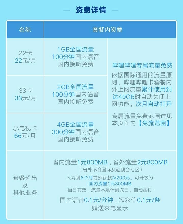 B站视频,看直播,游戏下载免流,直播、应用内网页不免流。
