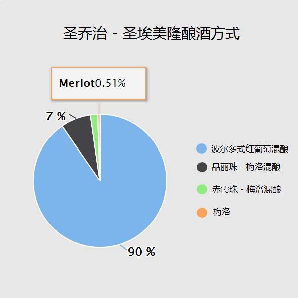 红葡萄品种:梅洛 ( Merlot )、品丽珠(Cabernet Franc)、马尔贝克(Malbec)、赤霞珠 ( Cabernet Sauvignon )等等。酒商们更倾向于使用经典传统的波尔多式混酿。