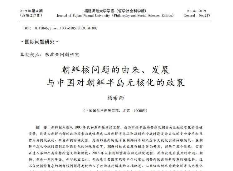 1.朝鲜核问题的由来、发展与中国对朝鲜半岛无核化的政策_杨希雨