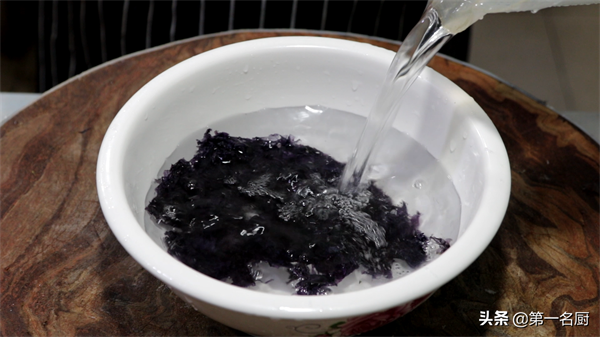 要想把紫菜洗干净,肯定是先泡发。将紫菜放到40度左右的温水中,浸泡10分钟左右,这样紫菜完全舒展开来,再进行清洗。