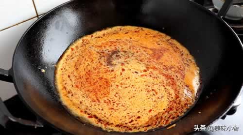炒出红油后,加一小勺白糖,再加点生抽搅一搅;然后加入水进去。