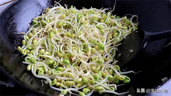 然后把黄豆芽倒进去翻炒,加入少量的盐进去。