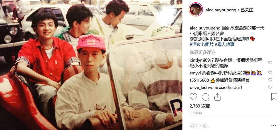1月3日,苏有朋晒出一张小虎队的青涩旧照并配文:“回到改变命运的那一天,小虎队万人签名会,参加过的可以在下面留个足迹吗?”照片中苏有朋、吴奇隆、陈志朋三人坐在一辆敞篷小汽车上开心地笑着,脸上还挂着未退去的婴儿肥,这波回忆杀啊,引得网友纷纷留言感慨。