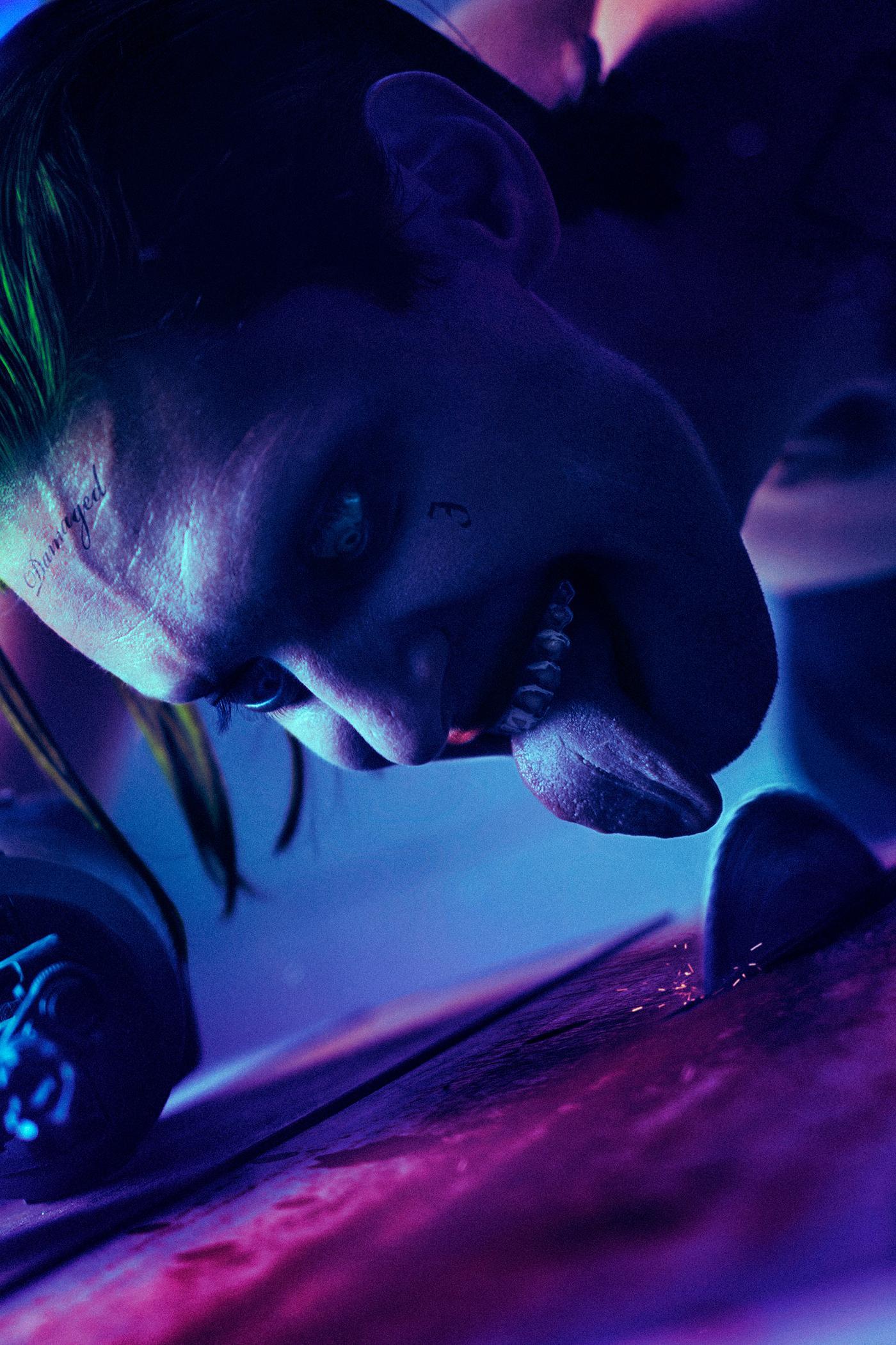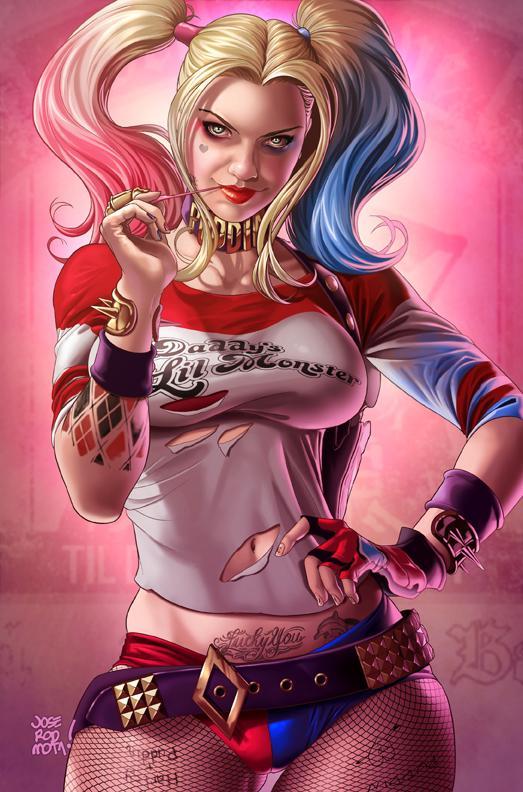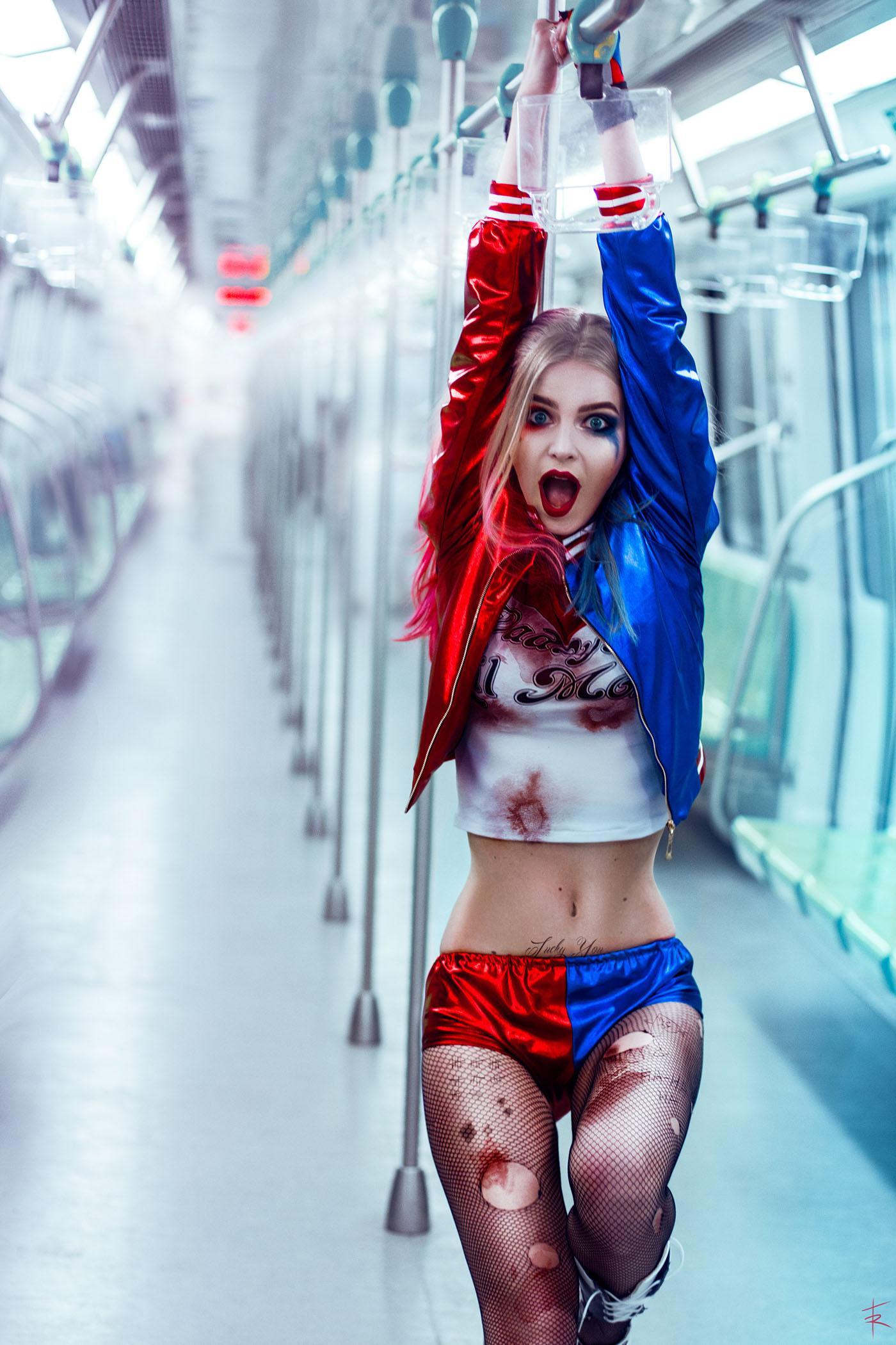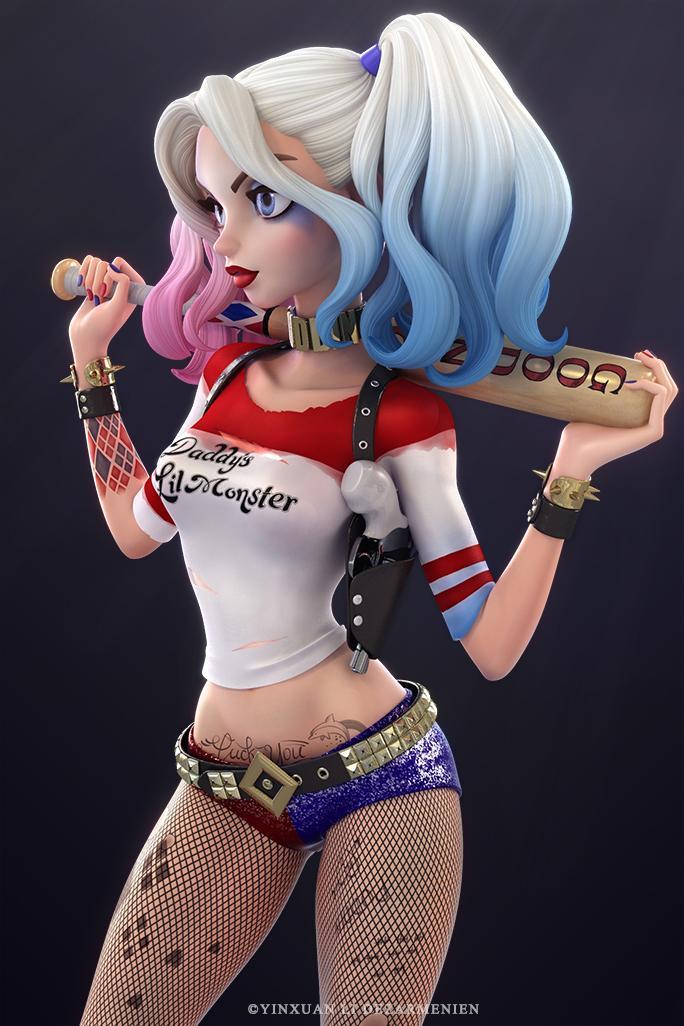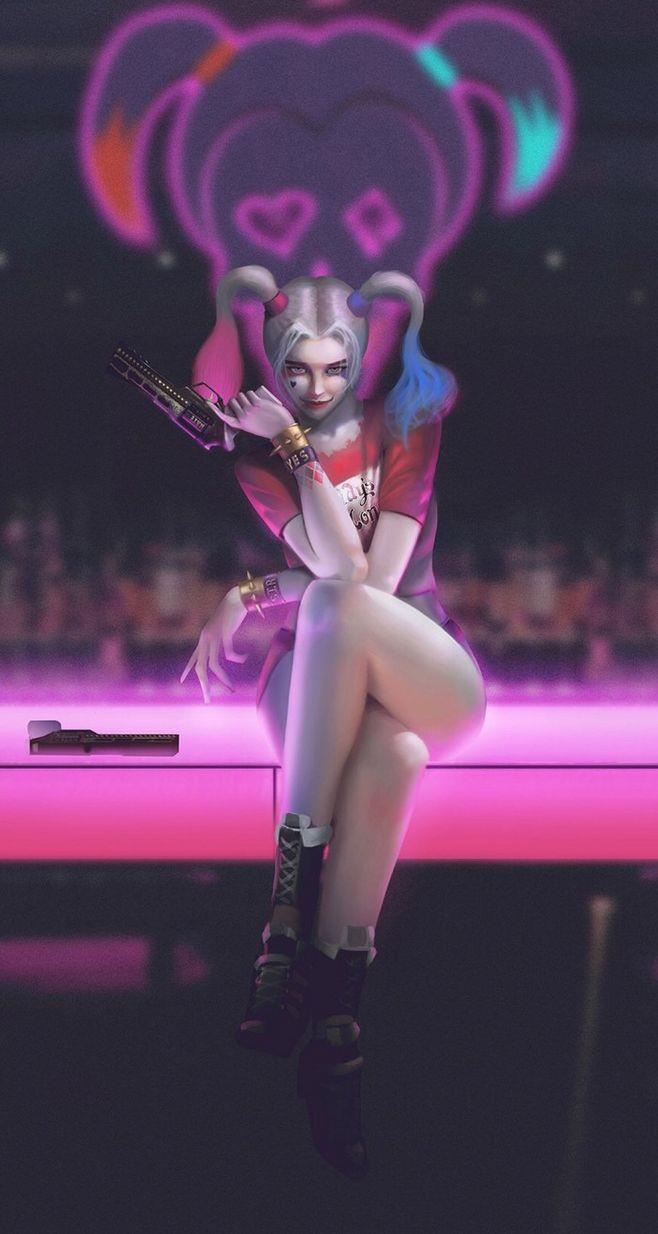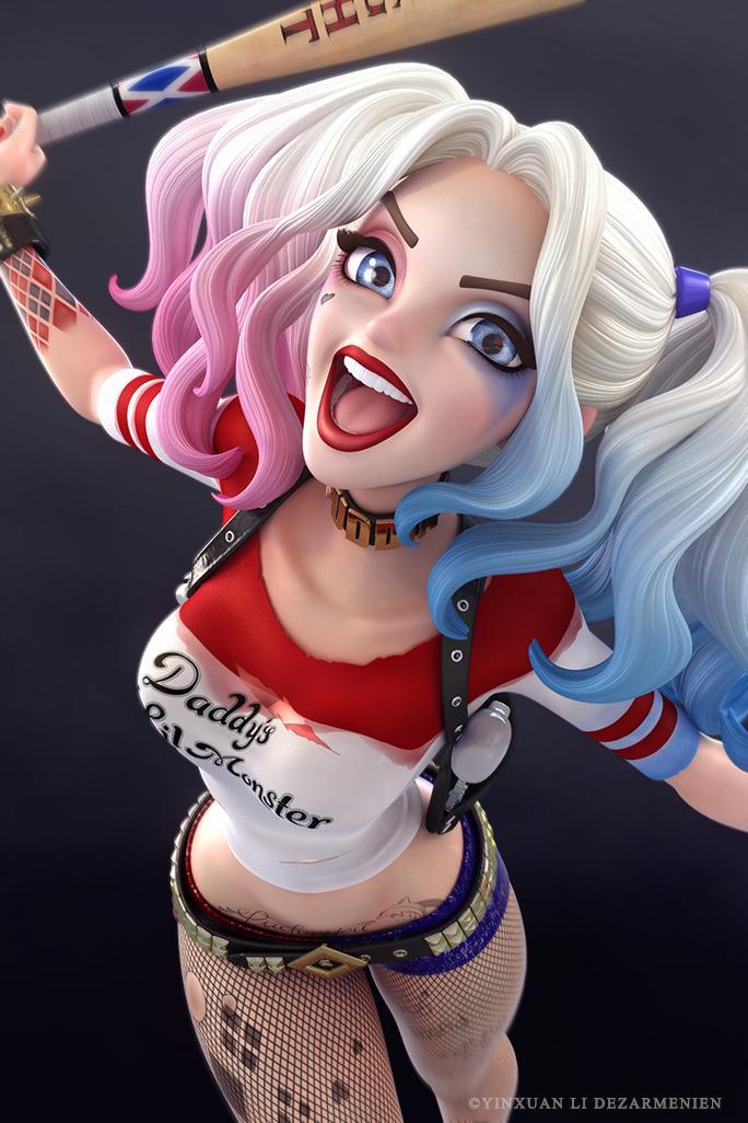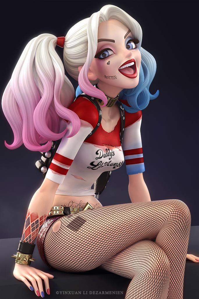 金发双马尾,被染成一粉一蓝,呆萌迷人,笑起来略带邪恶,让人过目不忘。性格乖张,完全预测不了她的行动。在监狱中淡定的喝咖啡,读书,享受生活。 而她对于爱情的态度可谓是为爱疯狂。这样的女人,小丑怎么会不爱她呢?