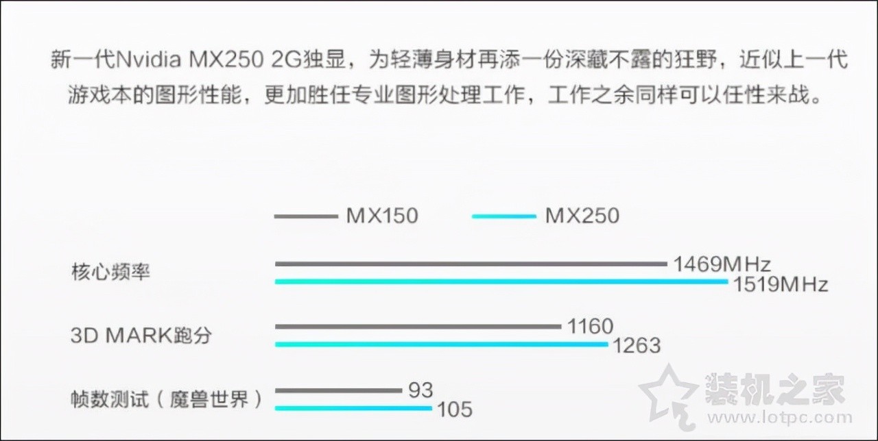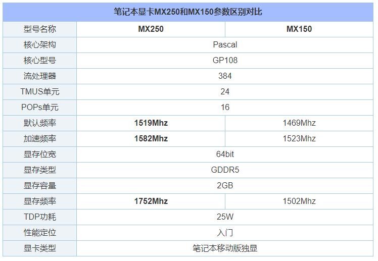 MX250作为MX150的升级型号,官方称MX250相比MX150显卡有着5-10%的性能提升,游戏实测下帧数大约只有10帧左右的提升。作为一款定位入门级显卡,主要是针对轻薄笔记本,相比Intel cpu集成显卡强一点,适合对显卡性能要求一般的人,适合办公和小型游戏娱乐。不占用cpu集显,同时降低内存占用率。