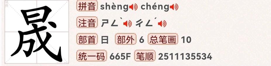 朋友们好,今天学习“晟”字怎么读,是什么意思呢?上日下成读 chéng 还是shèng?一起来学习一下吧!
