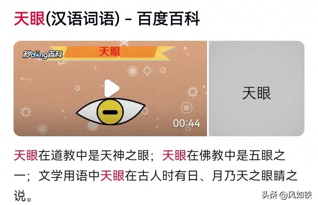这就是所谓“天眼”的初期来源,它的含义是:对天道的见解——简称“天见”。