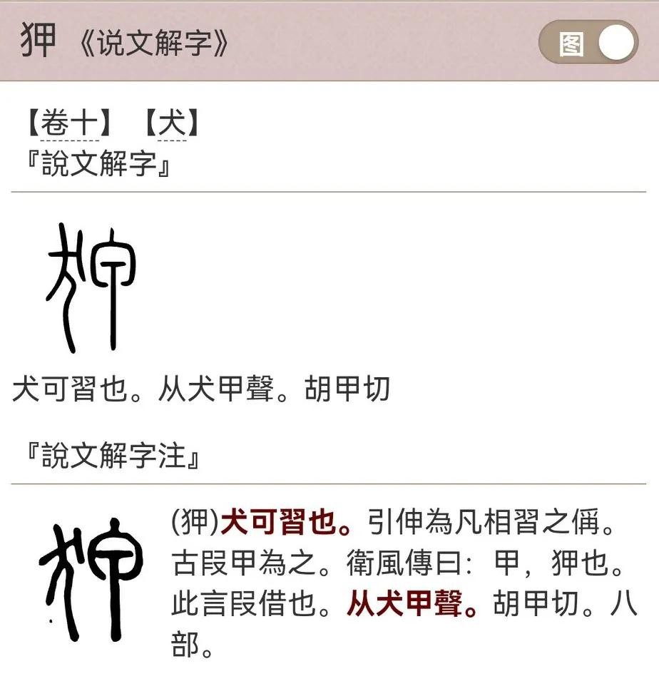 狎,汉语二级字,读作狎(xiá),形声。从犬,甲声。从犬,犬善与人玩耍。本义指驯犬。