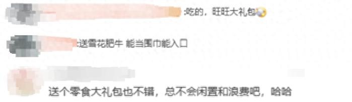 而关于送什么礼物?许多网友纷纷给出了自己的建议。一部分网友表示:实在想不到送什么,就送点吃的喝点,这可非常实用!