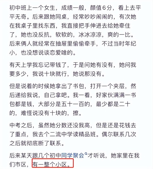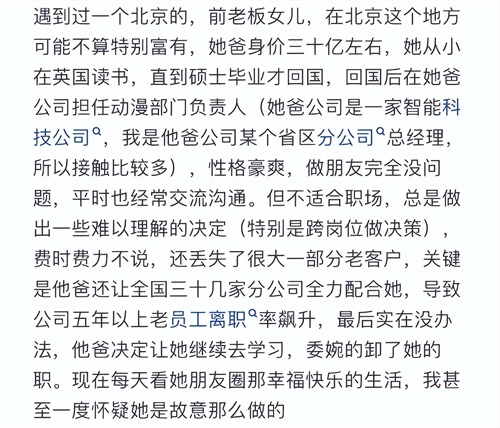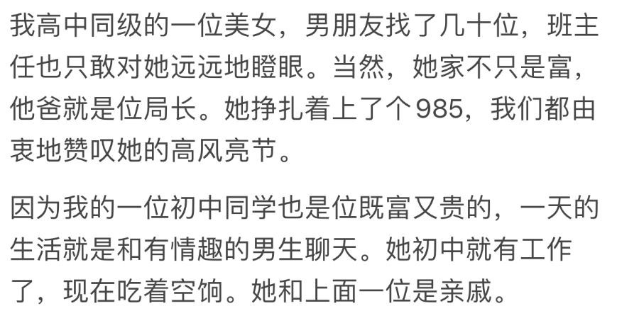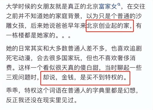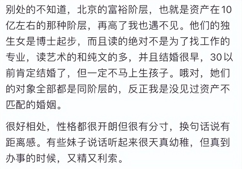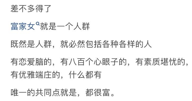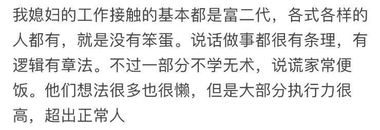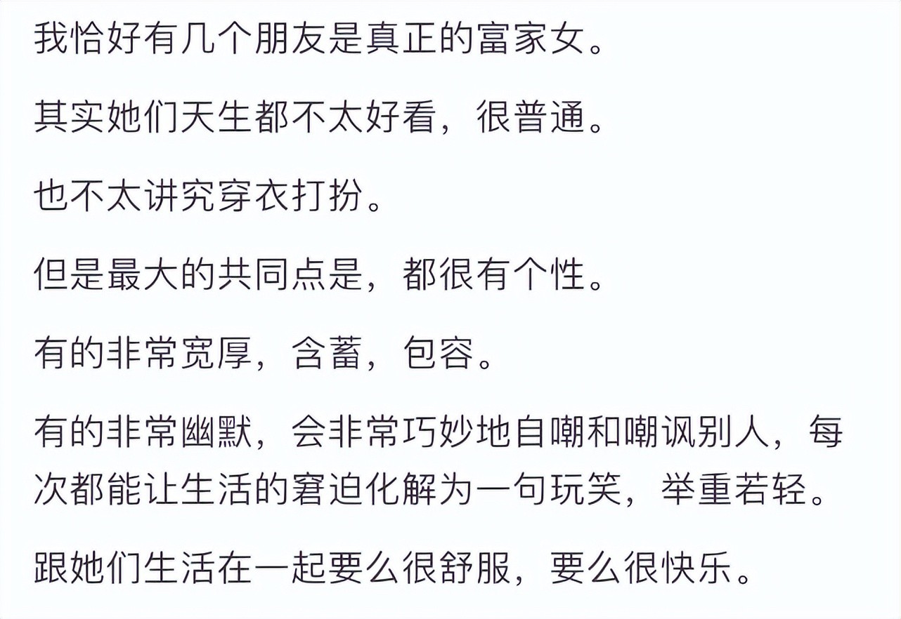 不管是富家女还是富家男,也不管其父母是商圈还是达官显贵,他们从小接触的“见识”是跟普通人不一样的,有钱人家的孩子成熟得早,别看表面一副傻白甜的样子。