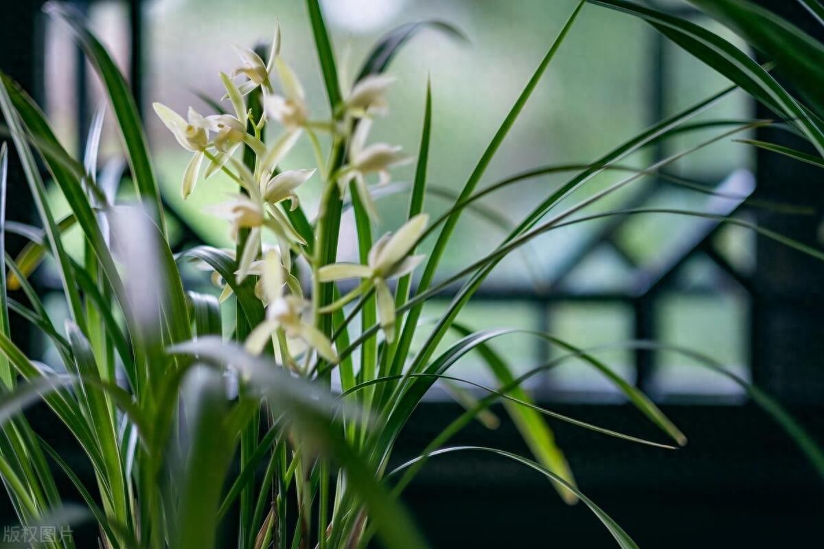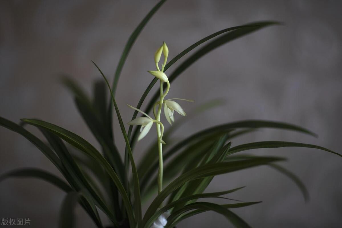 荡字也是蕙兰老八种之一。荡字的叶子比较柔软,叶子的颜色比较浅,是那种嫩绿嫩绿的。它的花朵是白色的,花瓣上有一些淡淡的绿色纹路。荡字的花朵形状很圆润,看起来特别可爱。它的花杆比较细,但是很长,一根花杆上能开好几朵花,花朵在花杆上错落有致地排列着,就像一串白色的小铃铛。