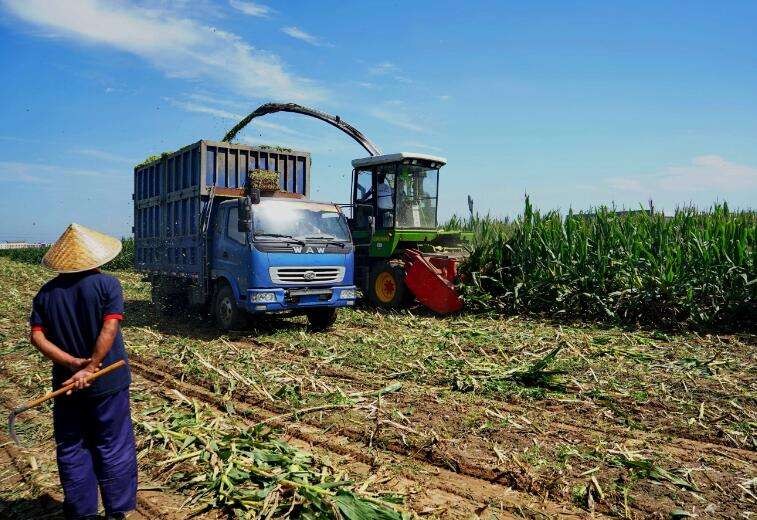 玉米带穗青贮,即在玉米乳熟后期收割,将茎叶和玉米穗整株切碎进行青贮,这样可以最大限度地保存蛋白、碳水化合物和维生素,具有较高的营养价值和良好的适口性,是牛的优质饲料。
