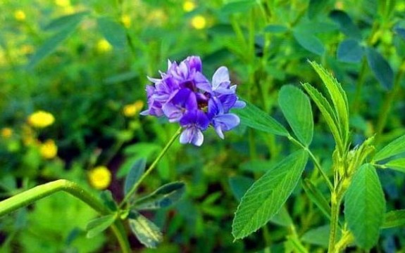 适口性好、营养价值高。苜蓿以“牧草之 王”著称,不仅产量高,而且草质优良,绿叶的苜蓿干草营养丰富,为牲畜所爱食,含约13-%16%的蛋白质及8%的矿物质。苜蓿含有大量的粗蛋白质、丰富的碳水化合物和B族维生素,维生素 C、维生素E及铁等多种微量营养素,适口性强,有能促进肠道蠕动、防止便秘和消化道溃疡的作用。在种畜、怀孕母畜日粮中添加一些苜蓿草粉效果良好。