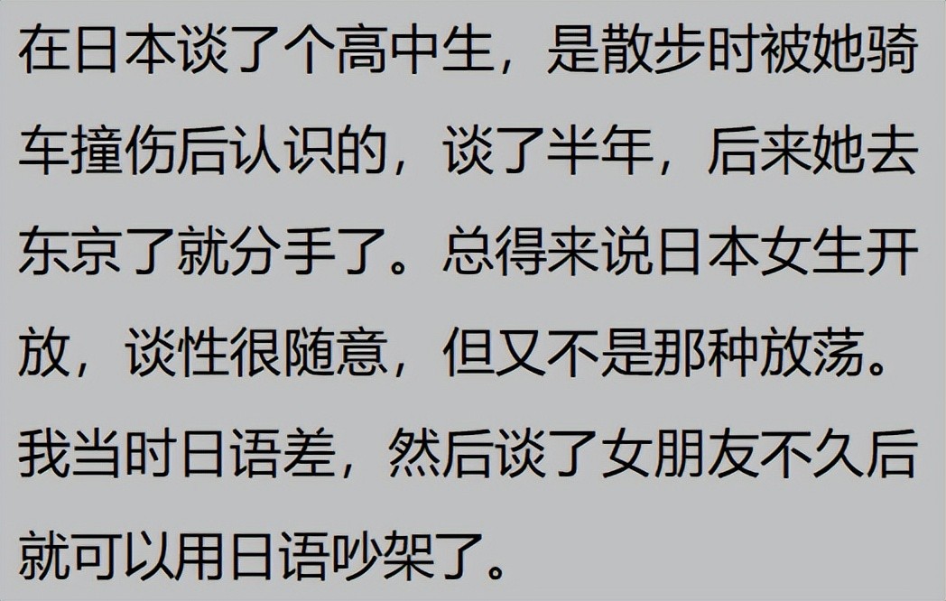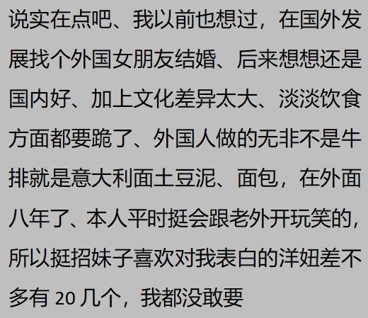 面对外国对象,中间的差异不是一星半点的,要面对饮食、语言等方面的不畅通。