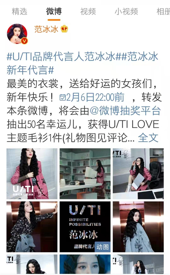 21年2月6日给U/TI(尤缇)女装品牌代言
