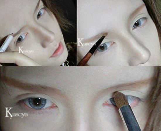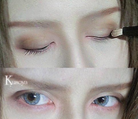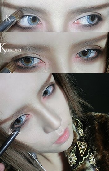 深色的眼线勾勒在眼睫处。然后拿刷子轻轻涂抹开,最后再次加重眼线。