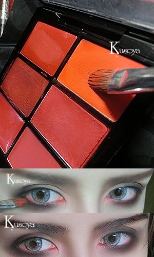 第二步:用爱茉莉单色94号眼影作为打底,从下往上大面积晕染,这个红色眼影真的很好看哦,很适合这个妆容。