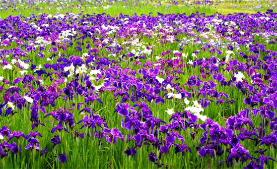 花菖蒲耐寒,喜湿润潮湿,花芽春季萌发,花期在早春至初夏。冬季进入休眠状态,地上茎叶枯死,来年重新发枝生长。