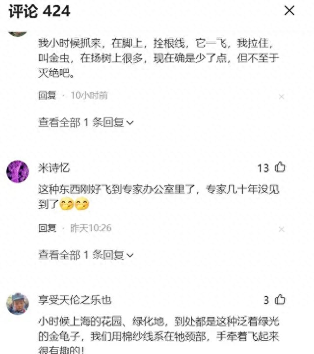 相关报道多用到“罕见”“惊现”“首次发现”这类词语,以表达难得一见的激动之情。但网友留言却显得很淡定,认为不稀奇。不少网友自称小时候玩过这类虫子,山上也没少见到。不过,也许网友玩过的甲虫并非阳彩臂金龟,只是长得像。