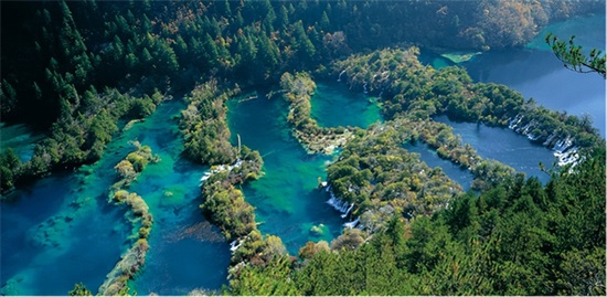 3、最下面是树正沟,有树正群海、老虎海、树正瀑布、双龙海瀑布和芦苇海等景点。