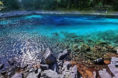 沿着栈道往回走1km左右就到达了【五彩池】,五彩池是九寨沟里最小的湖泊,犹如上帝打翻的调色板一样,美不胜收,秋冬之时是五彩池最美的季节。游览完后乘观光车回到诺日朗。