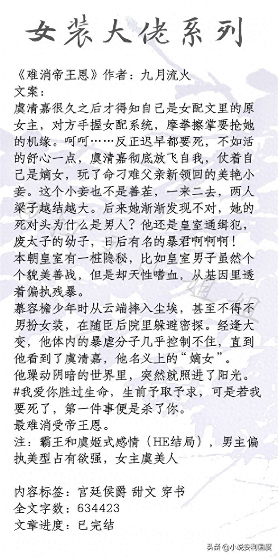 完结小说推荐穿越甜宠文《蛇蝎美人的求宠日常》《兄宠》强推吹爆