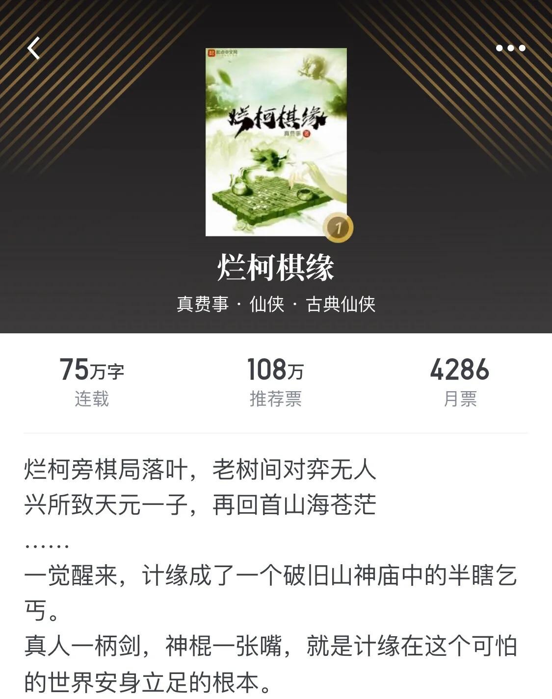 主角参加公司举行的活动,在山上发现了烂柯棋局,受此影响穿越到仙侠世界成为一座破庙里的半瞎乞丐。如果说开头主角落魄时的表现只是个怕死的普通人,言行举止也略显轻浮,进宁安县后剧情则是渐入佳境,主角也真正褪去浮华的外表,明心境,证道心,开始有了仙味。