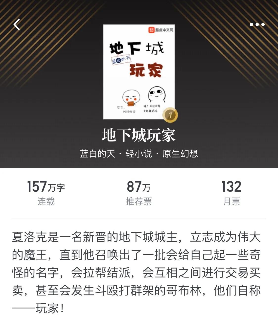 今年看过的好书之一,地下城恶魔经营笔记,对社畜的吐槽很搞笑。后期逐渐套路重复自己,丧失了追文的兴趣,追平连载之后养肥了,还没看完。男主太过强大之后,就没有碾压的期待了。故事幽默,脑洞很大,自成一家,幕后流的优秀作品。
