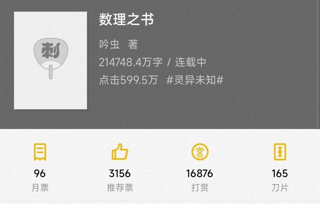 另外还有一些比较奇葩的小说没算进来,比如那本拿ai写的一亿七千万字的《宇宙巨校闪级生》,刺猬猫那本二十一亿字的全是圆周率的《数理之书》,铁血读书那本七千五百多万字的个人各种文章合集《家在渌水边》等,这些明显不属于正常网文的我就不算进去了。