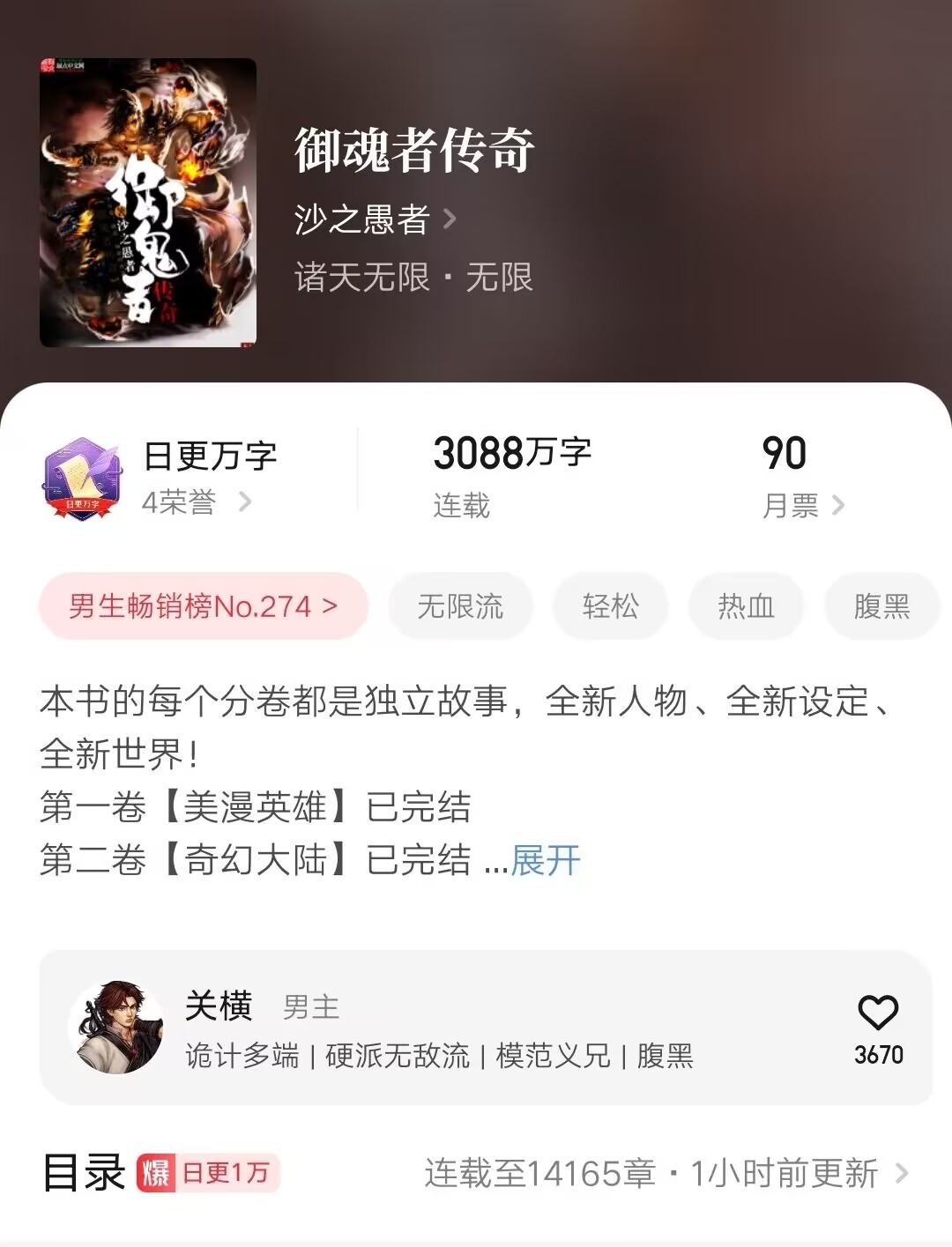 而且作者现在还能每天日更万字,实在太能水了,鱼人二代水了那么多年现在也才每天四千字佛系更新。