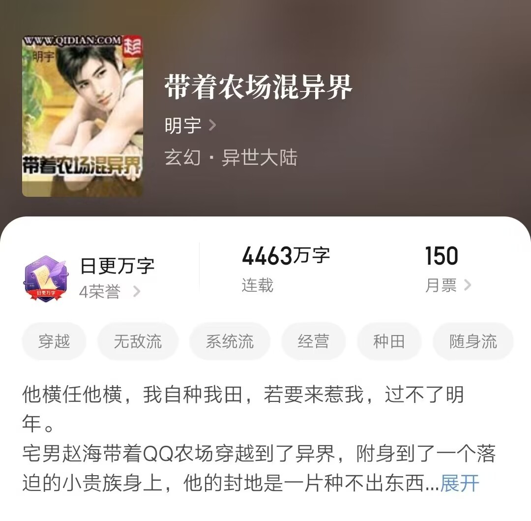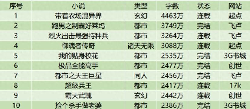 盘点字数最多的十本小说,《带着农场混异界》以4500万字继续霸榜