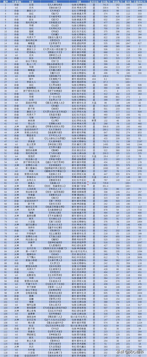 在这122部作品中,最值得阅读的有42部,被读者评为神作的有27部,小说书单如下(结尾附带全部百盟作品)。