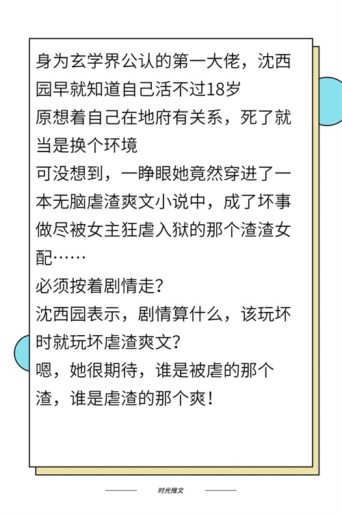 第三本是玄学女主大佬穿到一本无脑虐渣爽文小说中,只不过她穿成的是那个被女主狂虐的那个渣渣,如今换成是她?谁虐谁还不一定呢!