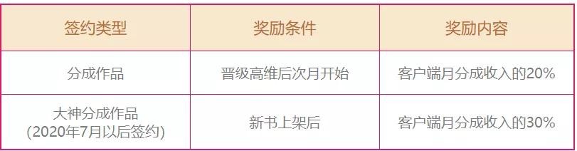 2020年1月后签约,且截止2020年8月1日仍在连载的作品,和新福利实行后新签约的作品,符合作品上架后连续断更小于3天、累计断更小于7天,可享受该奖励。