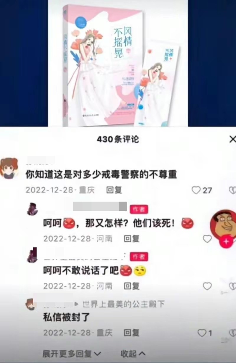 1月5日0点,四川戒毒官方账号发布视频点名批评《风情不摇晃》,“文学创作要有底线,莫让英雄流血再寒心”,让这本网络小说瞬间登上热搜。