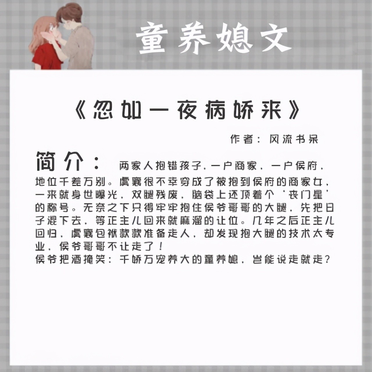 1.《忽如一夜病娇来》作者:风流书呆